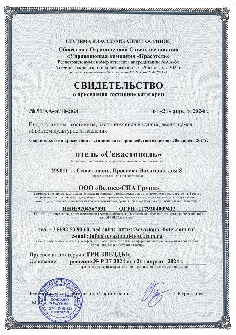 SEVASTOPOL HOTEL & SPA – идеальное место для знакомства с величественным городом Севастополем, для деловых поездок и проведения крупных мероприятий, семейных путешествий и романтического отдыха.